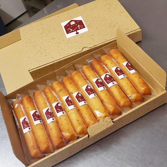 うぃーたのフィナンシェはスティック型になっていて、お手軽に食べられる人気商品です。 洋菓子としてはシンプルな味わいで主張が強すぎないおいしさです。 コーヒーや紅茶によく合うので、ティータイムにおすすめのお菓子。 そんなフィナンシェをみんなでシェアしやすく11本セットにしました! 独り占めもよし、みんなで食べても良し◎ 贅沢なひとときをお過ごしください。 【原材料】卵(松浦市産)、バター、甜菜糖、薄力粉、アーモンドプードル/膨張剤、香料 (一部に乳製品、卵、小麦を含む) 【内容量】フィナンシェ 11本 高温多湿を避けて常温で保存してください 【賞味期限】各個包装に表記 【栄養成分表示】食品単位1本あたり(推定値) 熱量:103.3kcal、タンパク質:1.2g、脂質:7.1g、炭水化物:9.3g、食塩相当量:0.1g ✿フィナンシェとは…?? フランス起源のバターケーキや焼き菓子の一種。フランスで生まれた伝統的なお菓子。